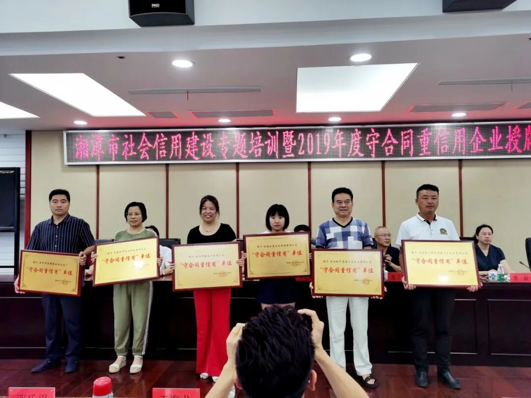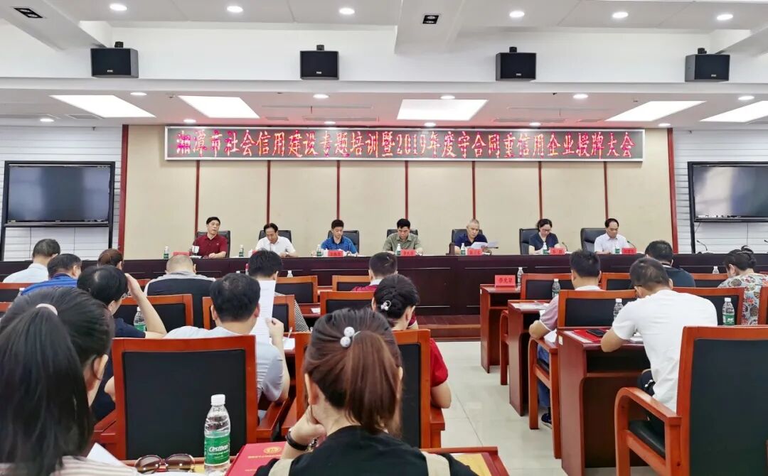 8月14日,湘潭市2019年度守合同重信用企业授牌会在湘潭召开。此次会议由湘潭市信用办主办,湘潭市企业信用促进会协办,湖南省发改委财信处副处长王海龙,湘潭市政协原副主席、湘潭市企业信用促进会顾问李光泉,湘潭市政府副秘书长、湘潭市社会信用建设领导小组副组长陈卫文,湘潭市企业信用促进会会长李自强出席会议,会议由湘潭市发改委党组成员、副主任、湘潭市信用办主任邓乐平主持。会议通报了170家企业为2019年度湘潭市守合同重信用企业,并对他们进行了授牌。